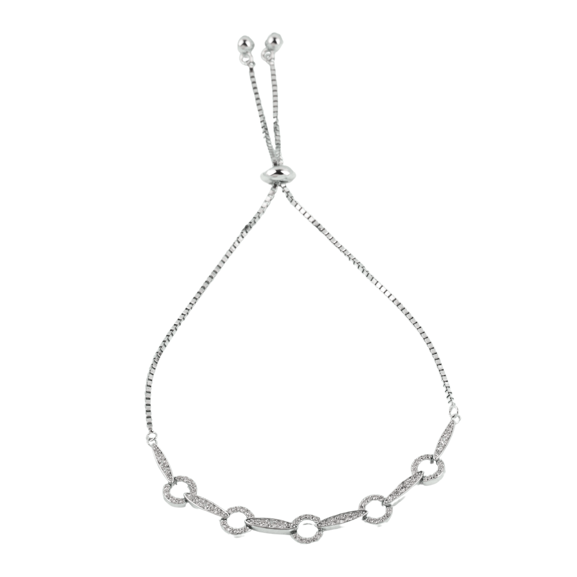 Elegant adjustable bracelet featuring circular link motifs with fine stone detailing in 92.5 sterling silver.