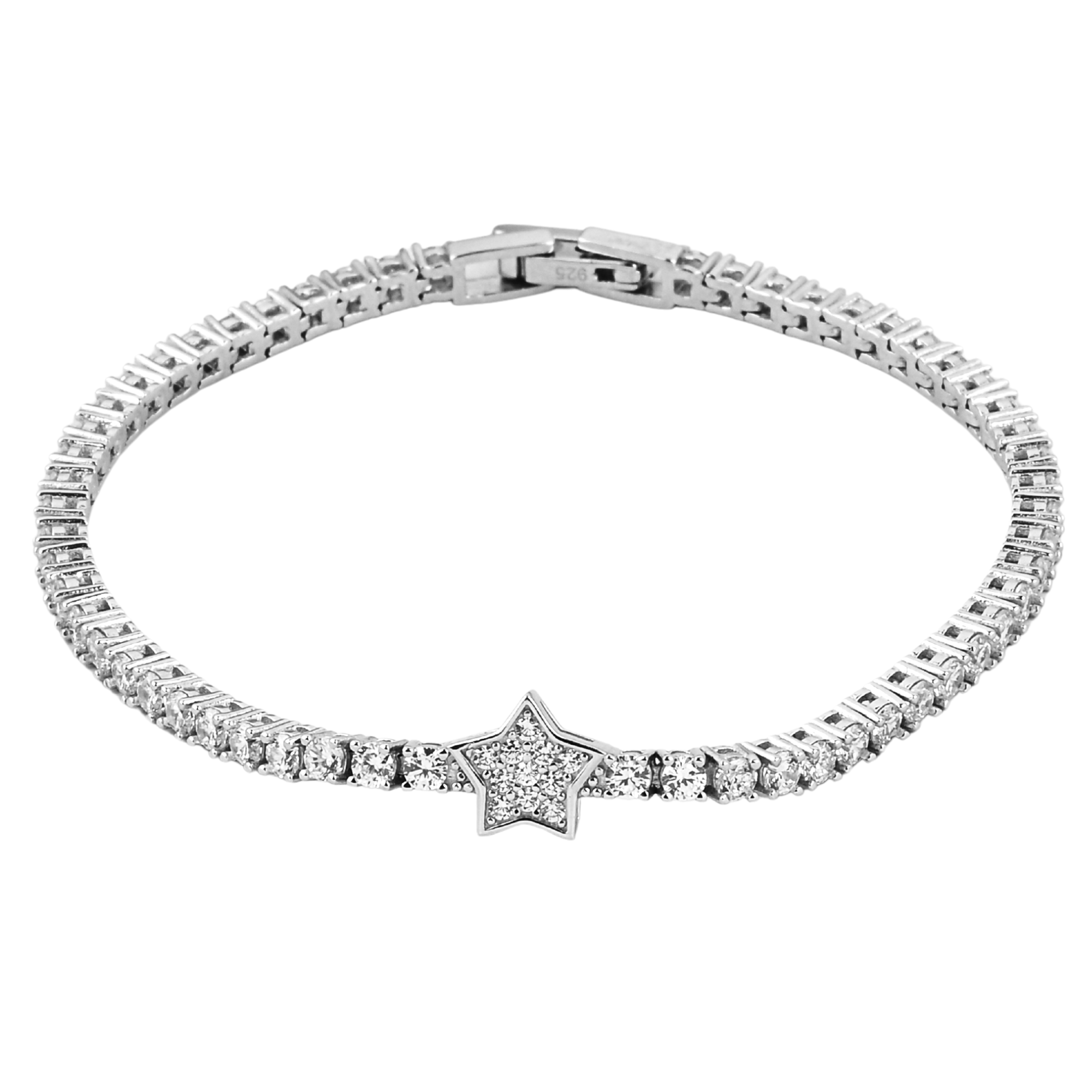 Elegant tennis bracelet featuring a dazzling star centerpiece in sterling silver.