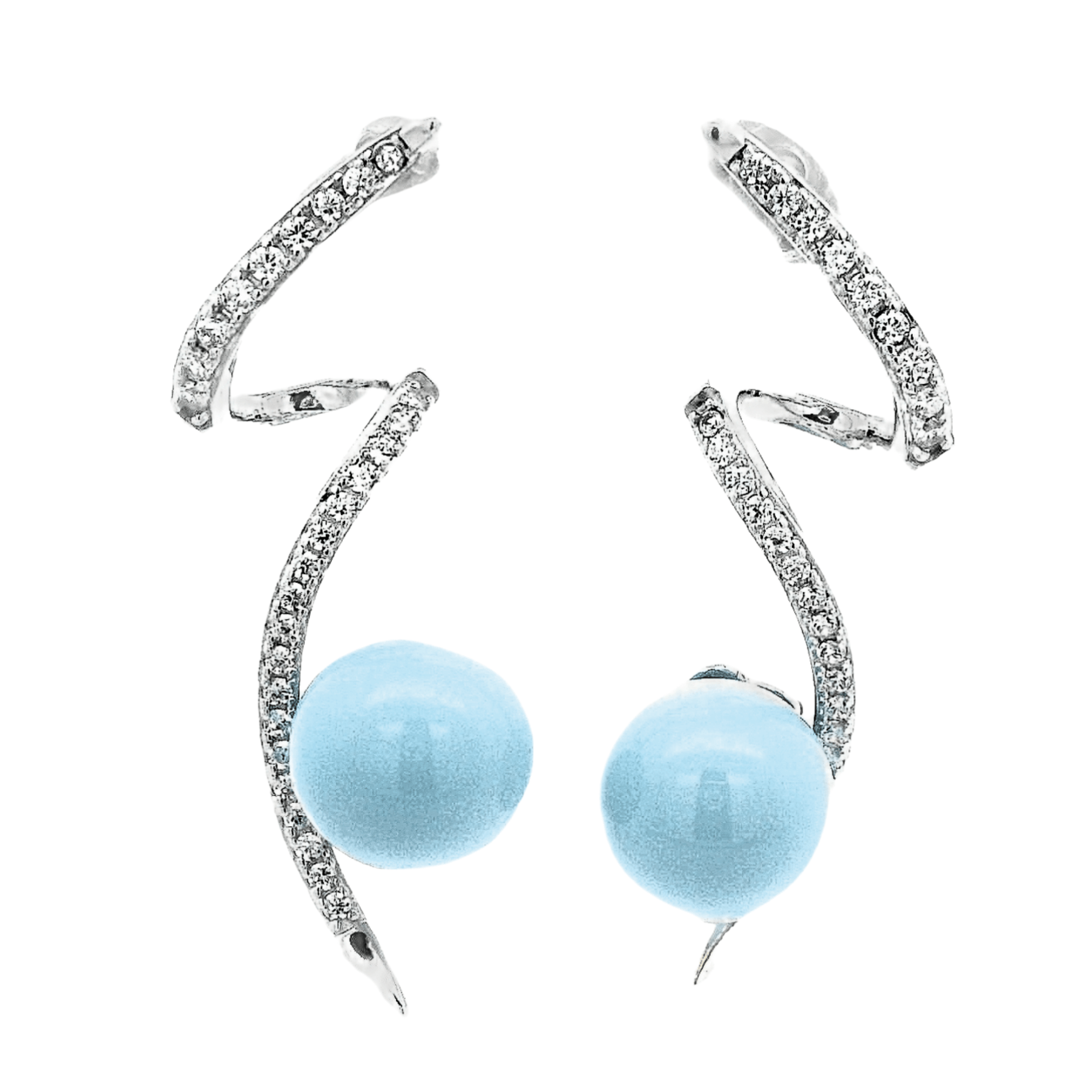 The 92.5 Sterling Turquoise Curve Drop Earrings are a perfect fusion of modern elegance and artistic design. Featuring a sleek, flowing curve embellished with fine shimmering stones, these earrings create a graceful silhouette that enhances your overall look.