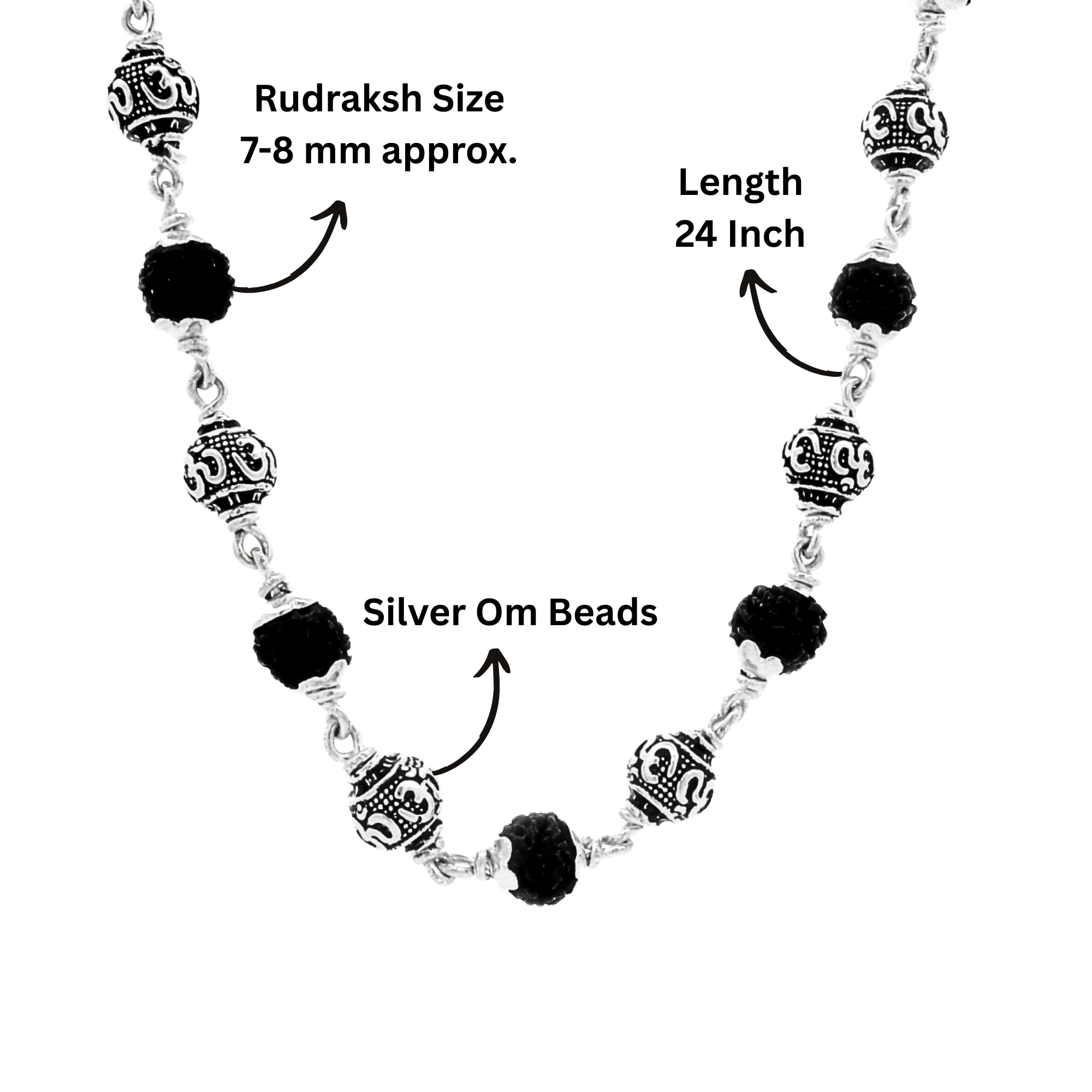 NameRUDRAKSH SILVER OM RUDRA MALA 925 PST 6-7 MM