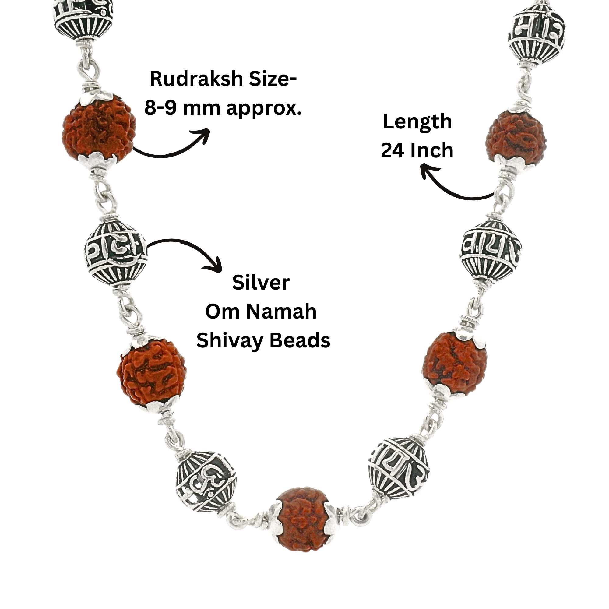 | Name | RUDRAKSH SILVER NAMAH SHIVAYA MALA 925 PST 8-9 MM |