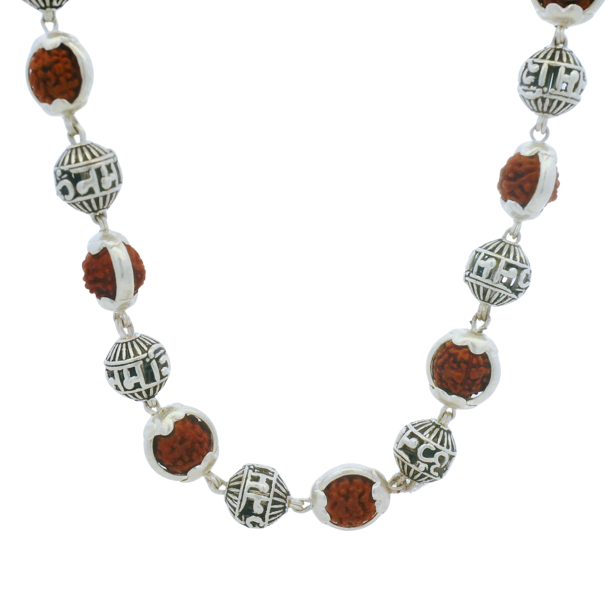 Variety Rudraksh + Circle Capping Silver Mantra Beads