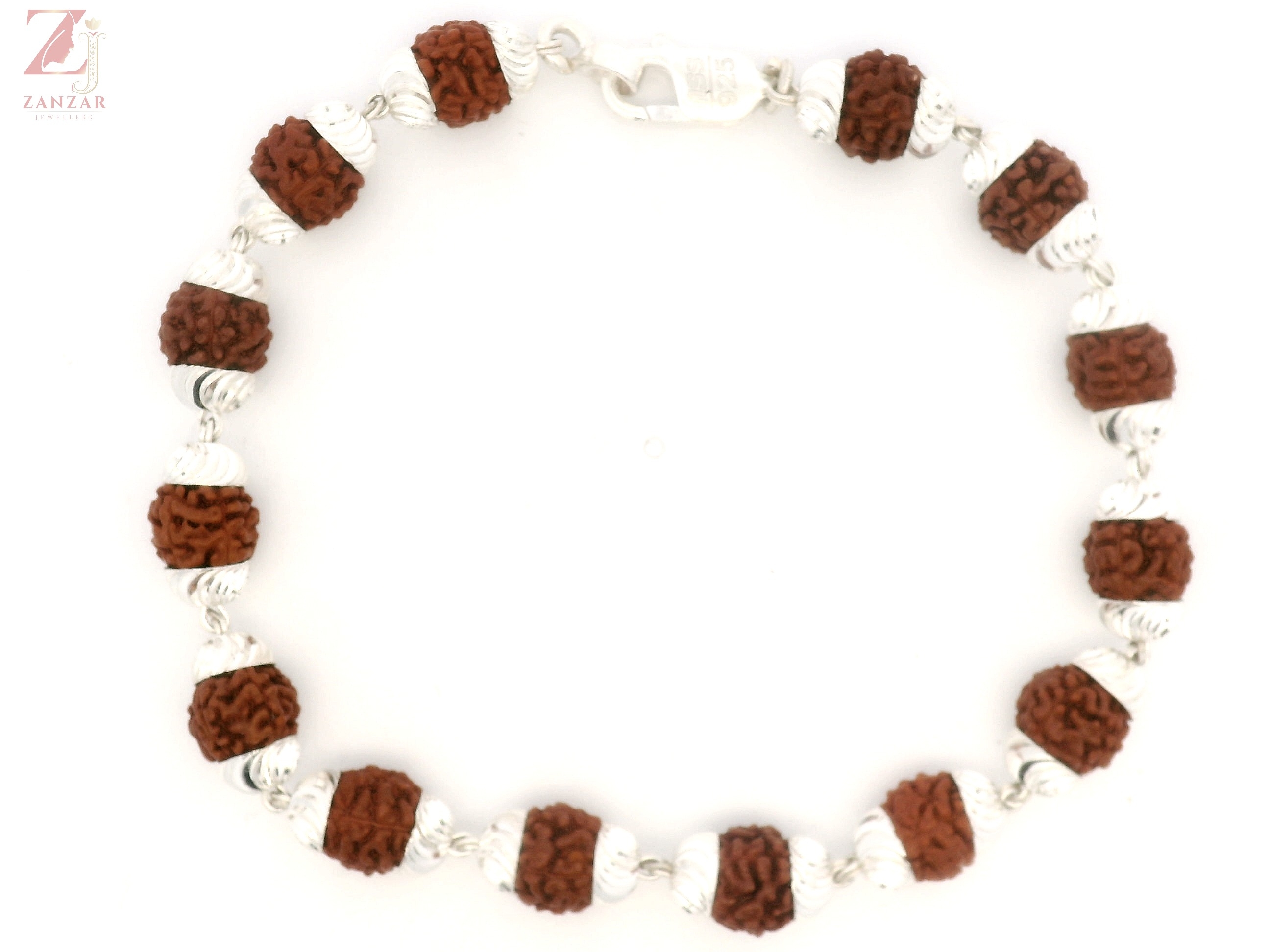 A divine Kailash C-Cut Rudraksha Silver Bracelet featuring natural Rudraksha beads with designer silver caps, offering spiritual protection, balance, and a refined traditional look.