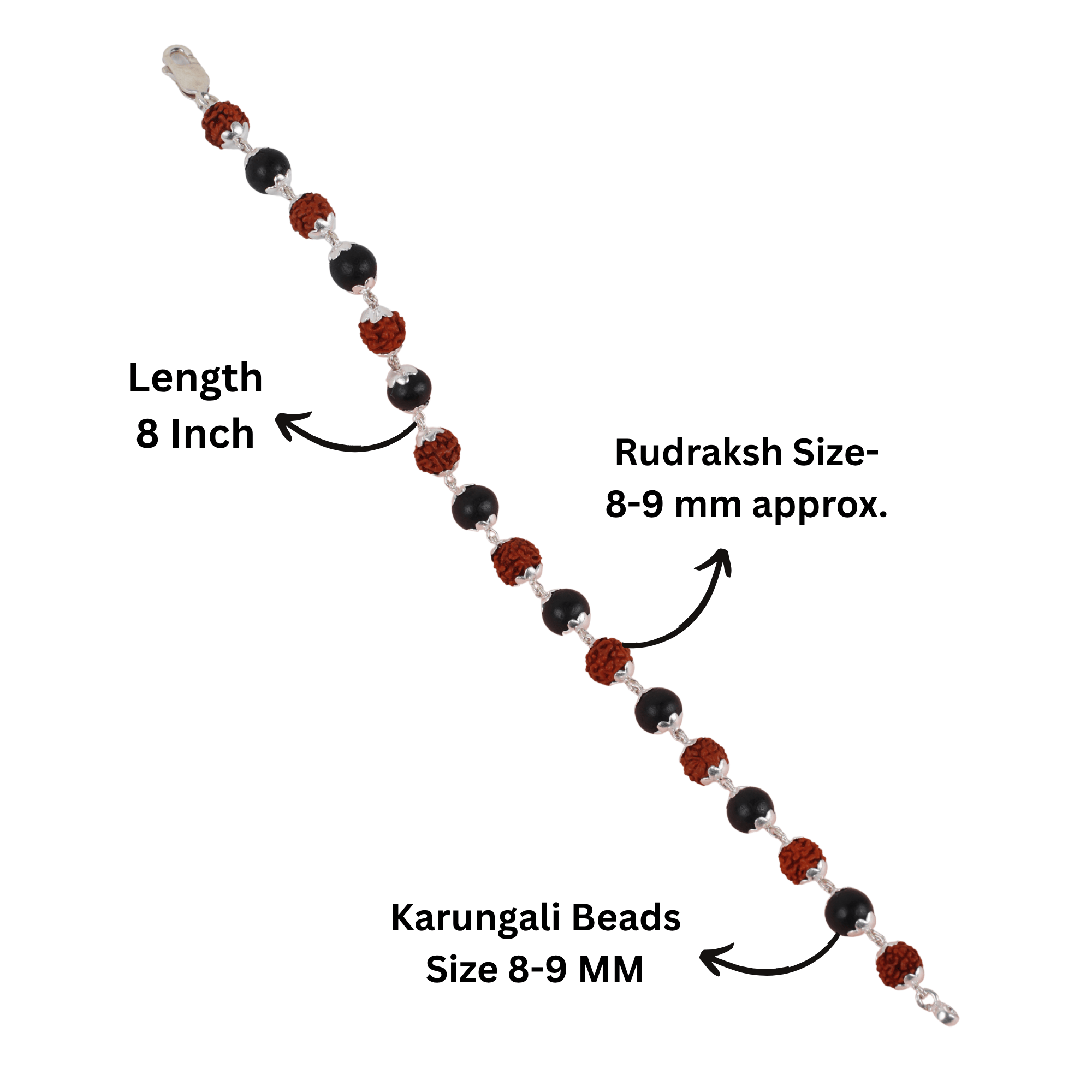 | Name | RUDRAKSH SILVER RUDRA KARUNGALI BRACELET 8-9 MM |